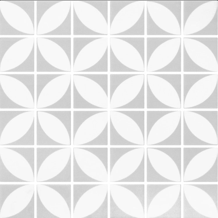 Penta Azalea est une mosaïque de verre déclinée en 6 teintes dans des tons pastel. Cette collection au motif pétales de fleurs blancs offre une finition mate. Le design géométrique de ce modèle est parfait pour vos projets aux inspirations vintages.